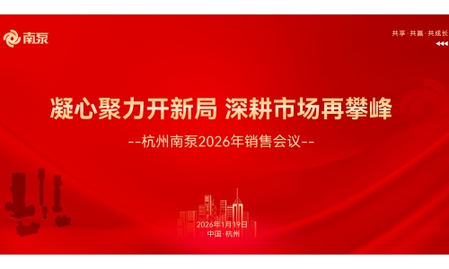 2026年1月19日,杭州南泵流體機械有限公司2026年銷售會議在杭州舉行,本次會議以“凝心聚力開新局,深耕市場再攀峰”為主題,公司領導班子、各銷售大區及辦事處負責人等核心骨干齊聚一堂,旨在共同復盤2025年發展成果,分析當前形勢,擘畫2026年戰略藍圖。